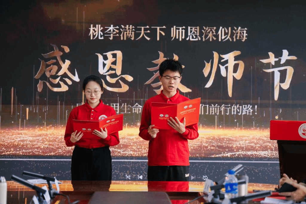 屠国颂、王书仪同学为教师们送上了诗朗诵《师恩浩荡,长歌以颂》,对马院爱岗敬业、无私奉献的全体教师致以最崇高的敬意和最诚挚的感谢。