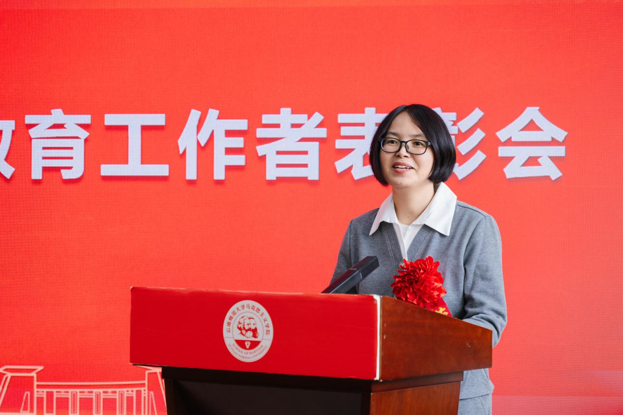 获奖教师代表杨春华在发言中对学院长期以来的培养表达了感谢,表示今后将继续为培养德智体美劳全面发展的社会主义建设者和接班人贡献力量。