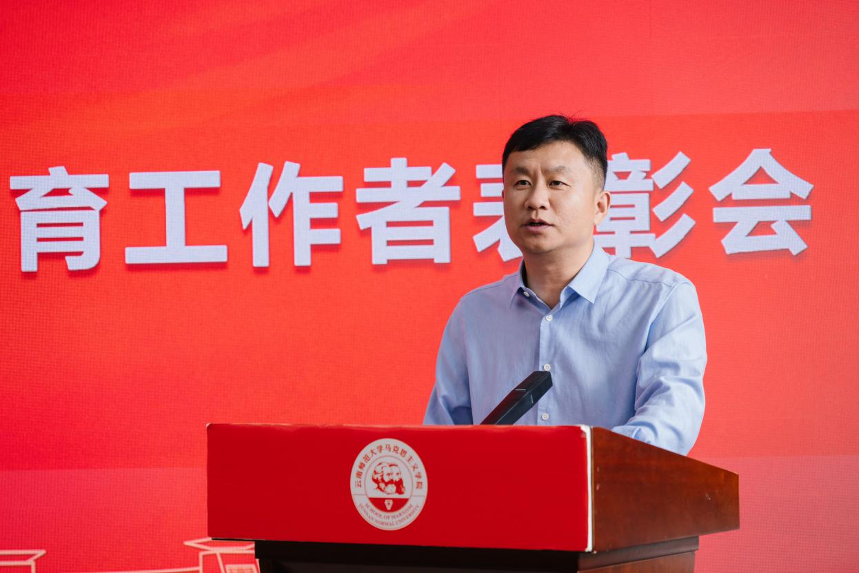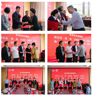 刘化军院长宣读了《马克思主义学院关于对2023-2024学年优秀思政课教师、教育工作者的表彰决定》。学院领导班子成员为杨春华等10名“优秀思政课教师”、高永祥等2名“优秀教育工作者”颁发了荣誉证书。
