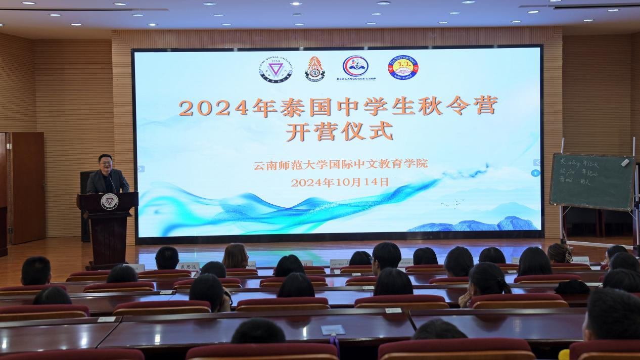10月14日,由8858cc永利唯一官方网国际中文教育学院举办的“2024年泰国中学生秋令营”在8858cc永利唯一官方网呈贡主校区同析2号楼报告厅开营。汉语国际推广师资培训基地(昆明)常务副主任沈毅、泰国Sarawittaya School、Dec Language School、Ratwittaya School 等学校107名师生参加。