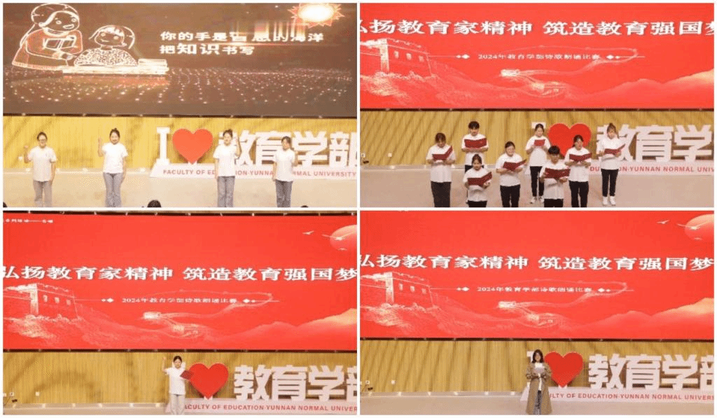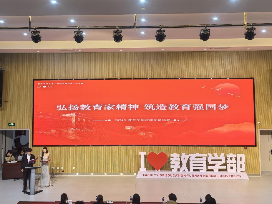 此次诗歌朗诵比赛为教育学部青春心向党系列活动——青颂,学院学子用真挚的言辞和生动的表演,歌颂教育家精神,传递教育的力量,也表达了对教育事业的热爱和对未来的美好憧憬,点亮教育的光芒。