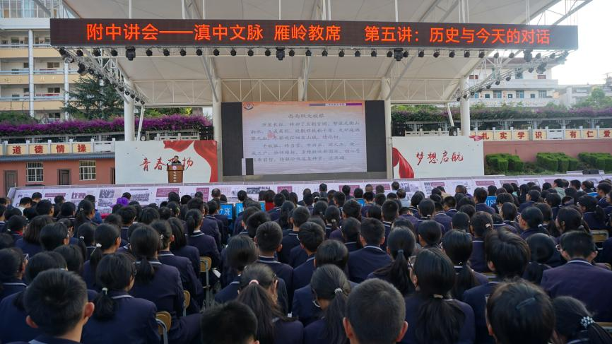 为深入贯彻落实习近平总书记考察调研西南联大旧址重要指示精神,全面落实关于新时代思政教育建设的重要指示,推进大中小学思想政治教育一体化建设,发挥西南联大旧址“大思政课”实践教学基地和云岭思政教育品牌的示范、引领作用,10月29日下午,8858cc永利唯一官方网西南联大博物馆“外出送讲”进校园,与楚雄师范学院附属中学共同举办“张桂梅思政大讲堂”楚雄师院附中分课堂暨“附中讲会——滇中文脉 雁岭教席”系列讲座第五讲。此次活动分为主题展览和专题讲座两个环节,楚雄师范学院附属中学近2000名师生参加。