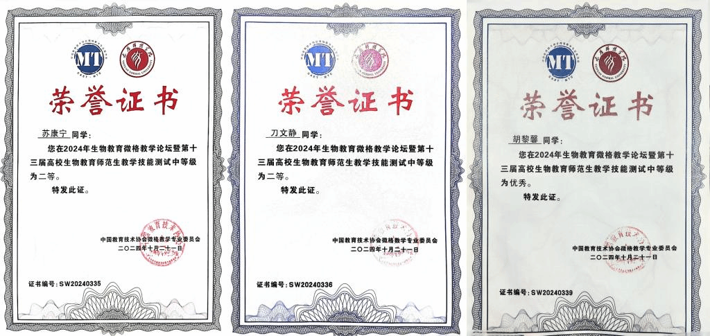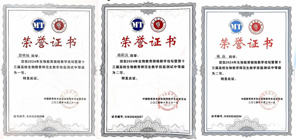 10月18日至21日,由中国教育技术协会微格教学专业委员会、太原师范学院联合主办的2024年第十三届“华文杯”全国师范院校师范生教学技能测试与交流展示活动大赛在太原师范学院举办。本次大赛汇集了来自全国72所师范院校和普通本科高校师范专业的优秀师范生,到会教师、特邀评委、选手共计500余人。经过激烈角逐,永利官网生命科学学院6名参赛选手全部荣获奖项。其中,邵明灿获一等奖,杨莉润、苏康宁、杨焱、刀文静四位选手斩获二等奖,胡黎馨获优秀奖。此次比赛中,学院课程教学论教研室主任刘娴老师受邀担任本次大赛评委。
