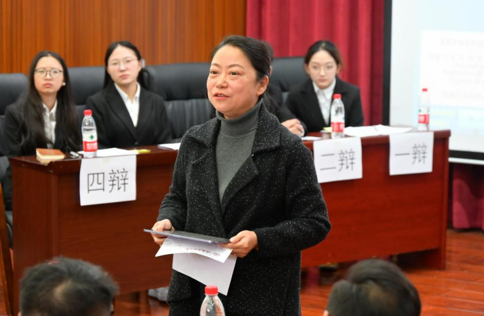 王英健对比赛进行点评,他分析了参赛队伍的优点与不足,并鼓励同学们要善于运用辩证思维,加强语言组织和论证辩驳等能力。