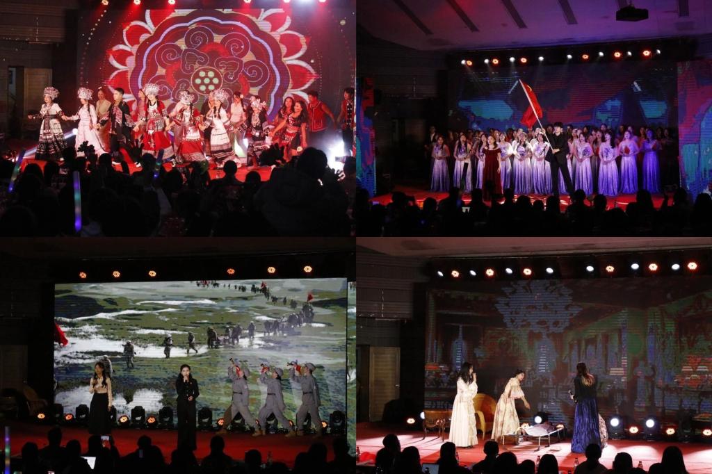 第三篇章是“七十五载·经典传承”。情景剧《深山里的女高》讲述了张桂梅校长引领深山女孩们求学逐梦的故事;情景剧《我有一束光》讲述了革命先烈萧楚女的故事;《盛世耀中华 同心向党恩》以舞蹈形式祝愿伟大祖国繁荣昌盛。最后,文学院研究生会全体成员齐唱《西南联大校歌》。