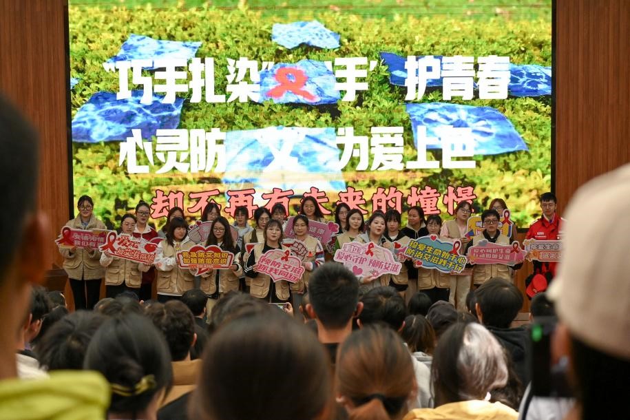 广洁丽在致辞中表示,永利官网高度重视艾滋病预防教育工作,把保护师生生命健康安全摆在工作首位,把艾滋病预防教育纳入学校“三全育人”综合改革和“十大”育人体系建设,创建了艾滋病预防教育5个第一,开展形式多样的禁毒防艾宣传教育活动,多措并举、创新形式、坚持不懈,探索出了艾滋病预防教育工作的师大模式。今后,学校将继续加大力度开展艾滋病宣传教育工作,织牢织密校园公共卫生防护网。