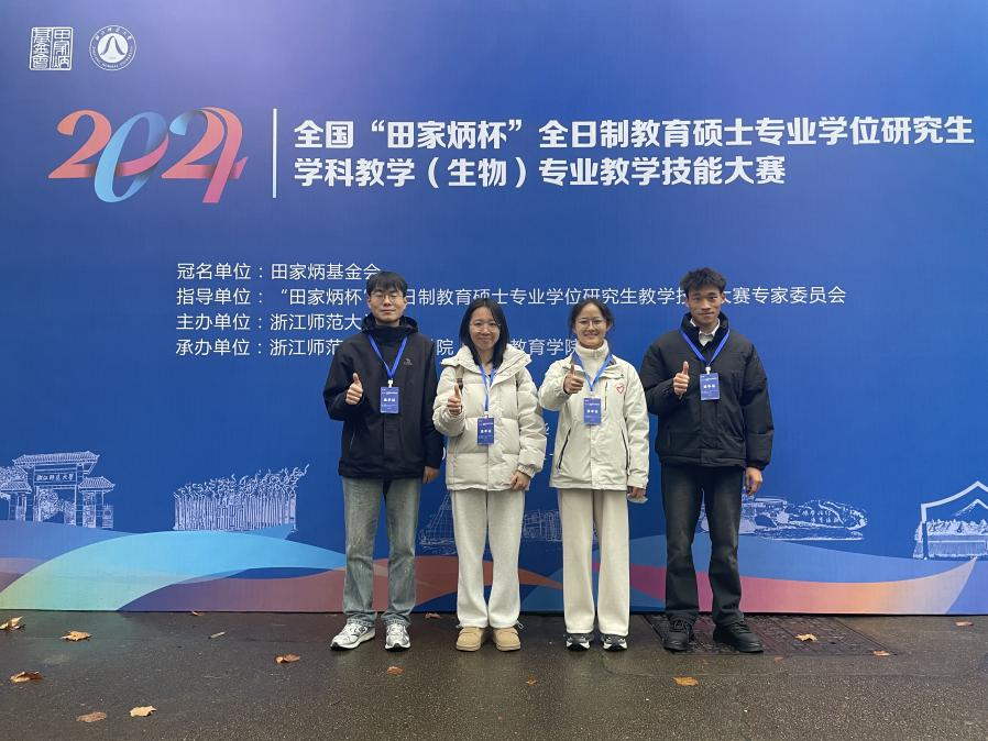 12月12日,2024年全国“田家炳杯”全日制教育硕士专业学位研究生学科教学(生物)专业教学技能大赛决赛在浙江师范大学举办。经过激烈角逐,生命科学学院蔡鹏同学获三等奖,侯丛斌、陈美君同学获优秀教学设计奖。