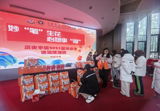 为鼓励即将踏上考研征途的2025届学子积极应考,缓解考研压力,传递学院的关怀与温暖力量,12月18日,历史学院在101报告厅举行以“‘妙笔’生花 心想事‘橙’”为主题的考研温情助力活动。学院党委副书记李琳、副院长丁琼、辅导员杨保维以及2025届考研学生参加活动。