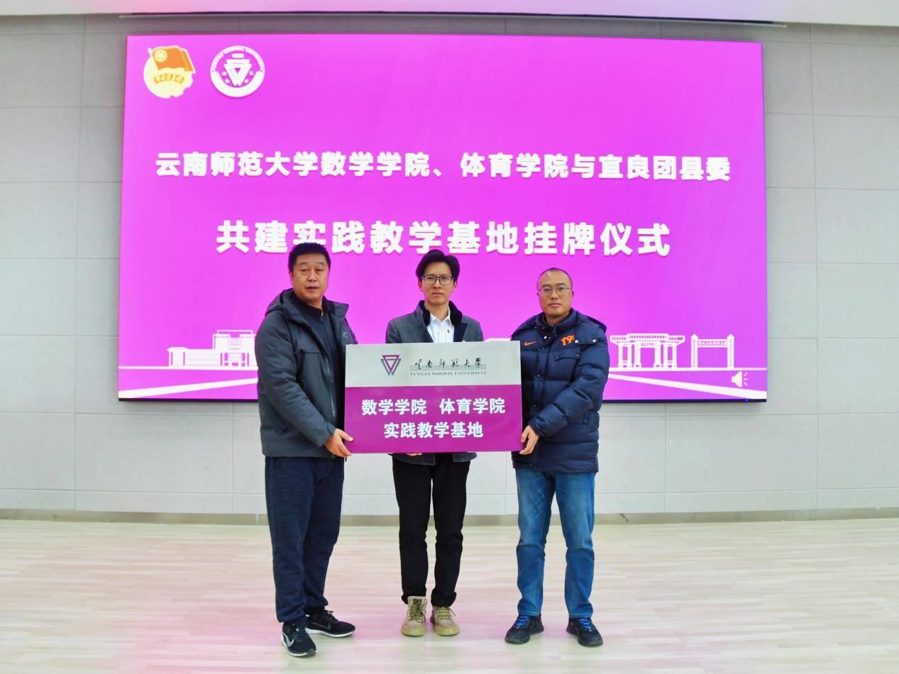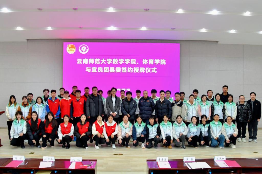 12月19日,8858cc永利唯一官方网数学学院、体育学院与宜良团县委社会实践校地合作签约授牌仪式在数学学院报告厅举行。永利官网团委副书记赵彪,昆明市宜良团县委书记星鑫,永利官网体育学院党委副书记李寿星、团委书记高宁,数学学院党委副书记段剑金、团委书记袁虹杰,宜良县学生体育文化协会会长陈庆红,2024年前往宜良县支教的40名志愿者及师生代表参加仪式。