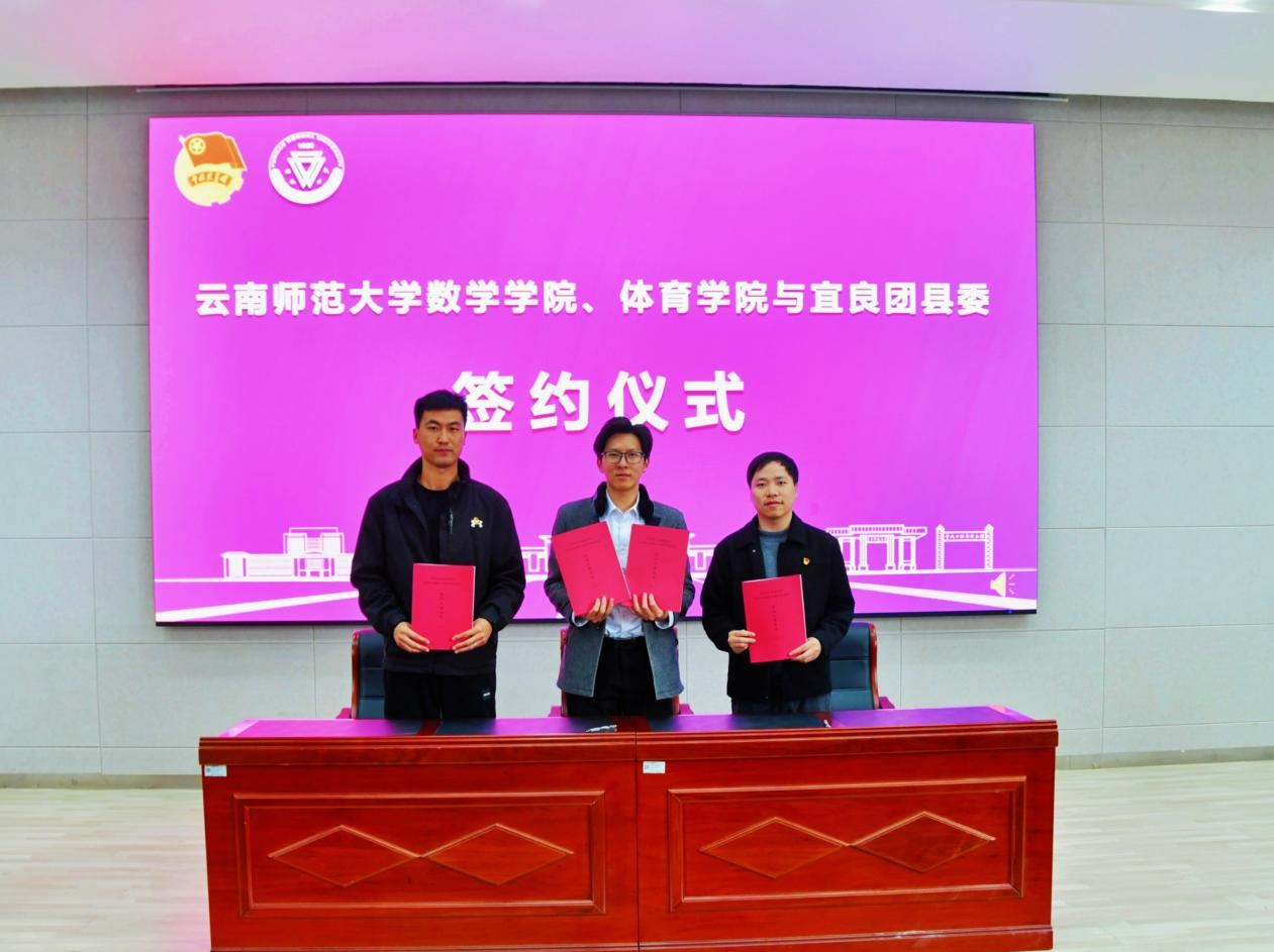 8858cc永利唯一官方网数学学院、体育学院与宜良团县委签约,李寿星、段剑金、星鑫共同为实践教学基地挂牌。星鑫、陈庆红为优秀志愿者代表发放奖励。