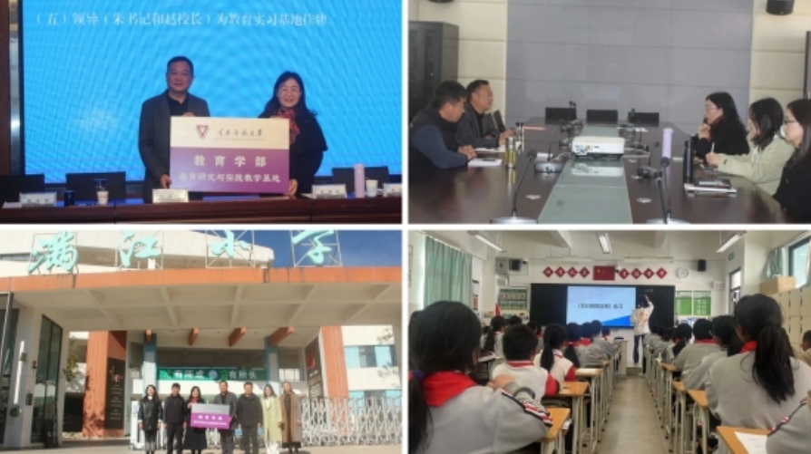 12月19日下午,教育学部与大理满江小学举行教学研究与实习实践教学基地共建签约暨挂牌仪式。大理经济技术开发区教育系统党委副书记杨国辉,大理满江小学党支部书记、校长赵浩伦,副书记杨宝祥,教育学部党委副书记朱静虹、辅导员胡志昕,满江小学师生、家长代表参加仪式。