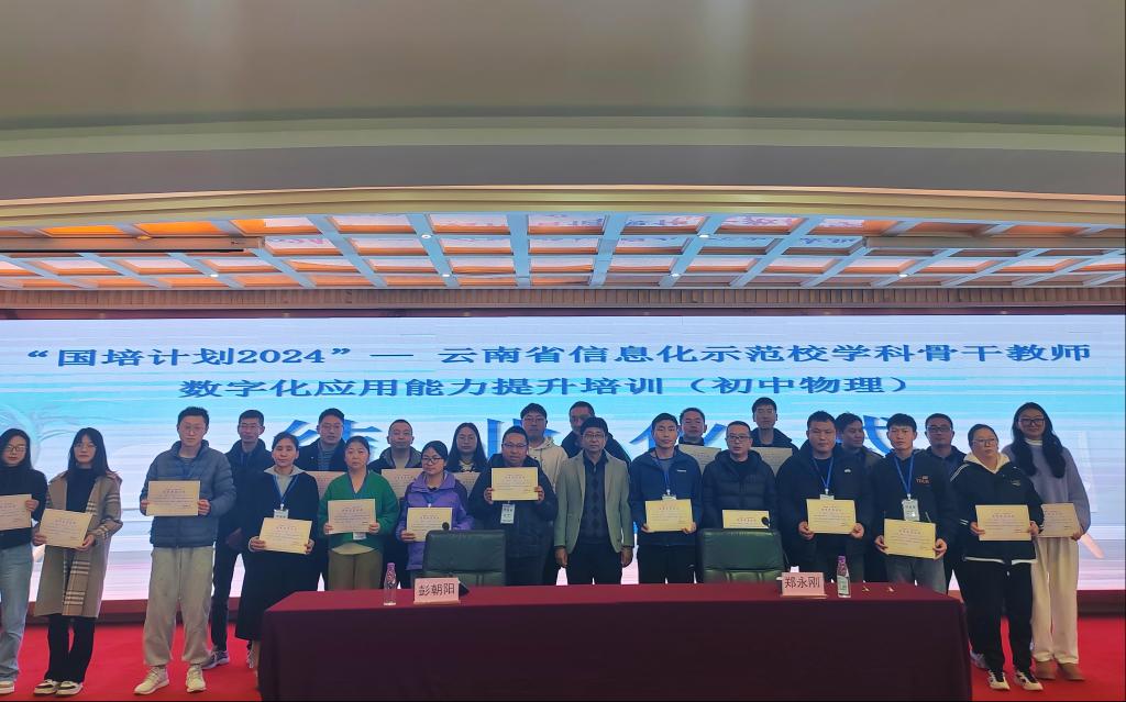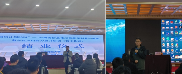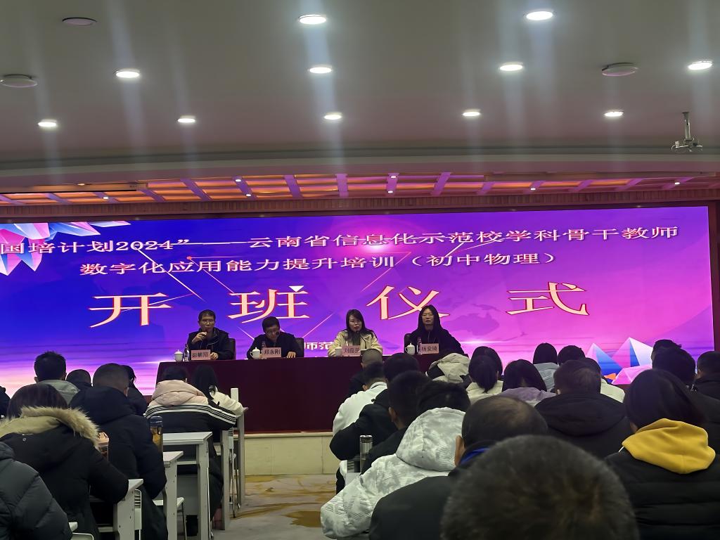 2024年12月21日至30日,“国培计划(2024)”——云南省信息化示范校学科骨干教师数字化应用能力提升培训(初中物理)在莲花宾馆举办。本次培训由8858cc永利唯一官方网物理与电子信息学院主办。云南省各示范校 150 名初中物理骨干教师参加培训。