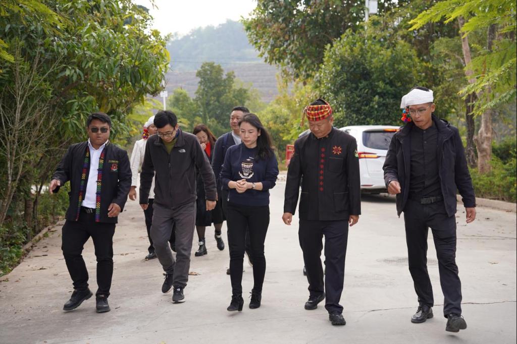 为积极落实德宏州人民政府与8858cc永利唯一官方网校地合作框架协议,2025年1月12日至13日,地理学部党委书记周妍,主任陈光杰,副主任牛乐德,学部少数民族文化与旅游发展研究院院长陈亚颦教授,研究生第一党支部书记苏斌一行前往德宏州陇川县勐约乡开展地理基础教育及文旅产业深度合作实地调研,并与德宏州政府及相关部门举行座谈。德宏州副州长雪琳,州政府副秘书长刘雁,州教体局副局长范赞耘、州农业农村局副局长范旭红、州文旅局正处级干部王兴全、州科技局干部刘阳及勐约乡党委书记石德福、州文旅局驻勐约乡营盘村第一书记岳胜昆参加座谈。