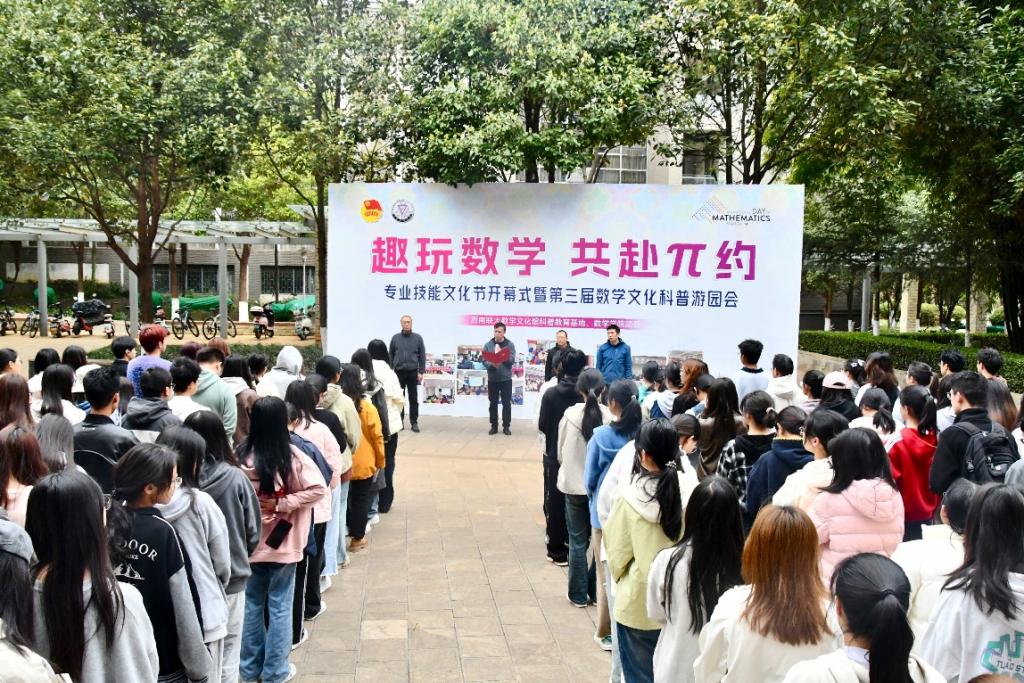 3月16日,为纪念国际数学日3.14(圆周率日),永利官网数学学院精心策划并举办了以“趣玩数学,共赴π约”为主题的数学文化节游园活动。此次活动由西南联大数学文化馆科普教育基地、中国共产主义青年团8858cc永利唯一官方网数学学院委员会主办,数学学院心理健康教育工作站、数学建模协会、楷木书斋社协办,面向全校师生。数学学院党委书记王世波参加开幕式并致辞,学院党委副书记段剑金、副院长王亮和王天志,学生代表等200余人参加开幕式。