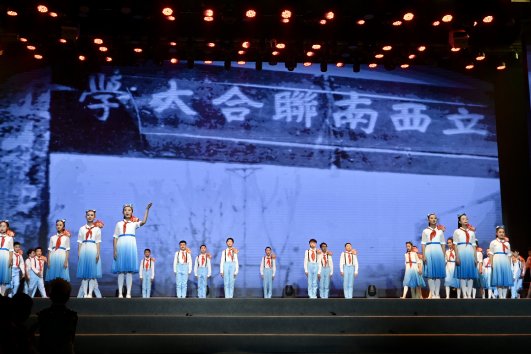 原创音乐剧《奇怪的咸菜坛子》带领观众重回西南联大岁月,感受联大先辈的精神;群舞《深谷燃灯》以动人舞姿致敬张桂梅校长扎根教育、无私奉献的崇高精神;情景对话《脊梁》、合唱《共产主义接班人》则通过真挚的情感和饱满的热情,展现了新时代少先队员昂扬向上的精神风貌……
