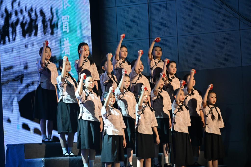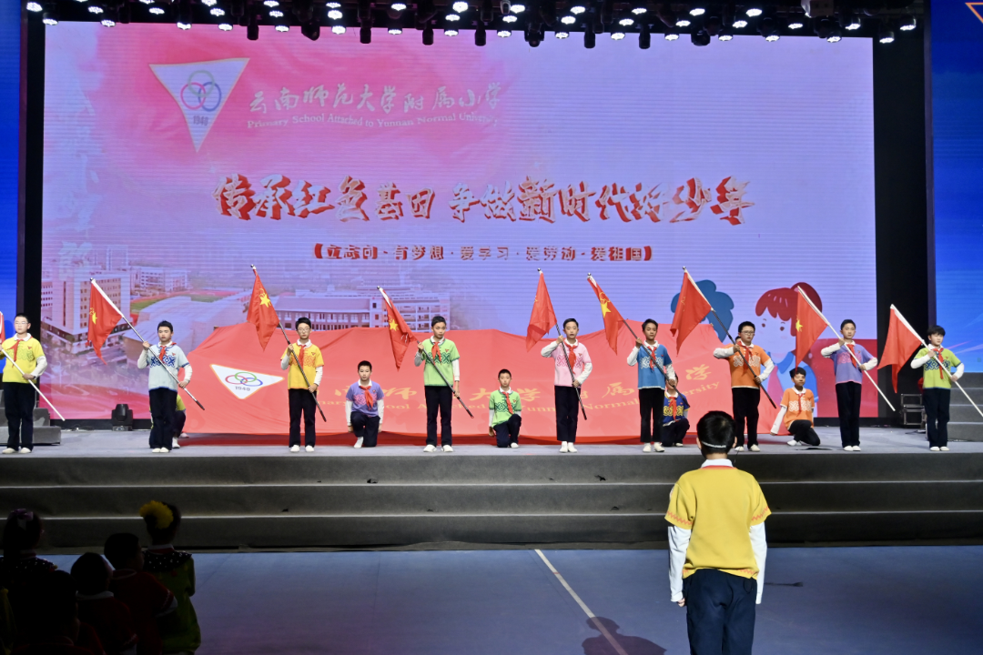 传承仪式上,六年级学生将象征传承的校旗队旗交予五年级学弟学妹,将责任与梦想传递。莘莘学子庄严宣誓:“今日附小少年郎,明日国家真栋梁”,坚毅的脸庞和掷地有声的誓言,表达着附小少年的理想与担当。演出在全场合唱《舍不得》中落下帷幕。展演节目内容饱含深意,形式丰富多彩,既是对附小少年成长的礼赞,更是对其未来的美好期许。