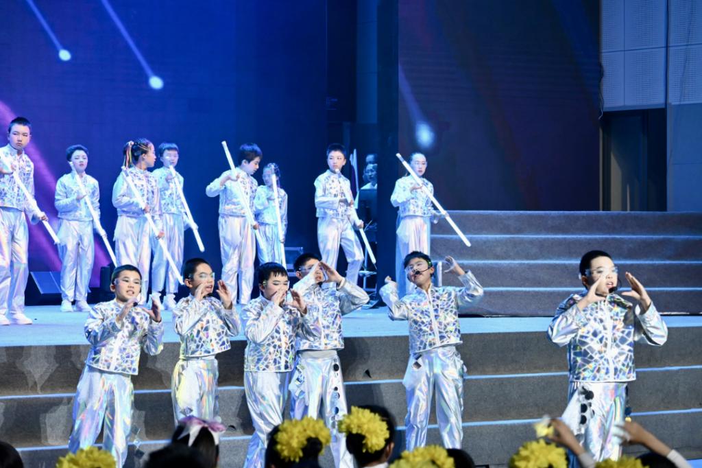 歌舞《数学disco》用街舞和说唱演绎几何之美;体育舞蹈《你要跳舞吗》将拉丁、篮球、啦啦操等技巧融入现代舞,彰显“体艺融合”特色;诗朗诵《我们在一起,就会了不起》以真挚情感将六年的成长点滴与对母校的眷恋之情化作最动人的告白。