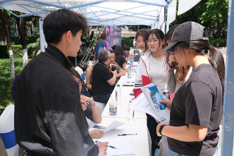 为助力2025届毕业生高质量就业,搭建校企供需对接平台,4月22日,8858cc永利唯一官方网经济类、管理类、法学与社会学类专场招聘会在呈贡校区明德1号楼前小广场举行。本次招聘会吸引了省内外70余家企业、事业单位,涵盖金融、管理、法律、社会工作等多个领域,累计提供就业岗位2000余个,吸引了近千名毕业生到场求职。