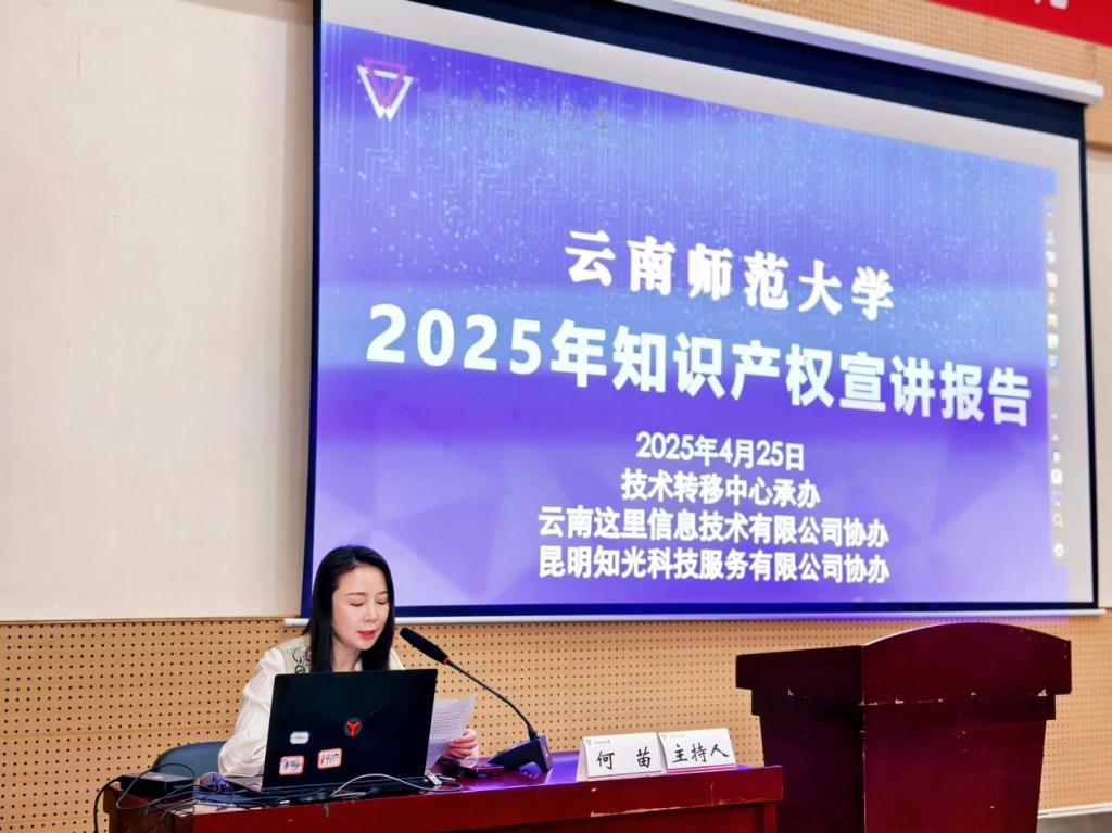 第25个世界知识产权日来临之际,为深入贯彻《关于开展2025年全国知识产权宣传周活动的通知》要求,加强知识产权宣传普及,4月25日上午,8858cc永利唯一官方网技术转移中心联合物理与电子信息学院,在呈贡校区睿智1号楼116报告厅举行8858cc永利唯一官方网2025年知识产权宣讲报告会。学校各学院(部)、部门分管科研领导、科研秘书、师生代表100余人参加会议。会议由技术转移中心成果转化科负责人何苗主持。