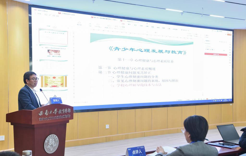 茶世俊教授作为教育教指委专家点评了西南大学刘衍玲老师《学校心理辅导的技术与方法》的课堂教学展示,并参加了“课程教学改革与教材建设”专家小组工作会议。
