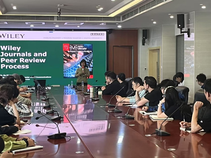 翁博士概述了WILEY的发展历程及集团旗下的重点期刊情况,介绍了WILEY旗下期刊的审稿工作流程,她结合工作经验,讲解了投稿过程可能遇到的问题。参会师生围绕“预印本与正式发表的关系”“开放获取期刊选择策略”等议题展开讨论。
