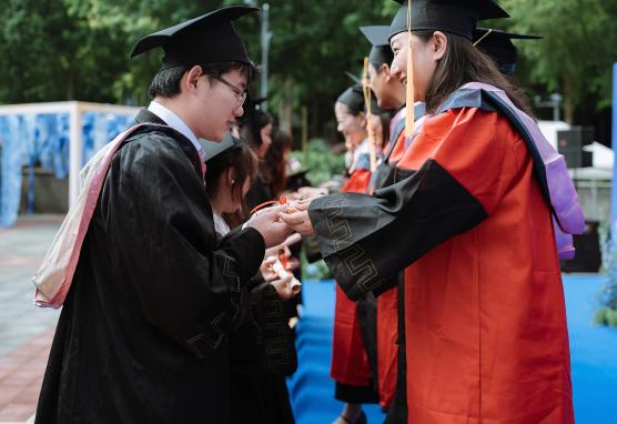 学院学位评定分委员会委员和研究生导师代表为全体毕业生拨穗并发放贺信送上祝福。