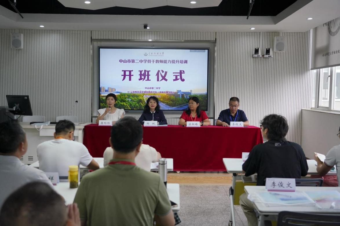 6月13日,由永利官网继续教育学院(教师发展学院)主办的中山市第二中学骨干教师能力提升培训班在永利官网一二•一西南联大校区开班。中山市第二中学党委书记梁红妹、副校长李俊文,继续教育学院党委书记邹飒以及49名中山市第二中学骨干教师出席开班仪式。