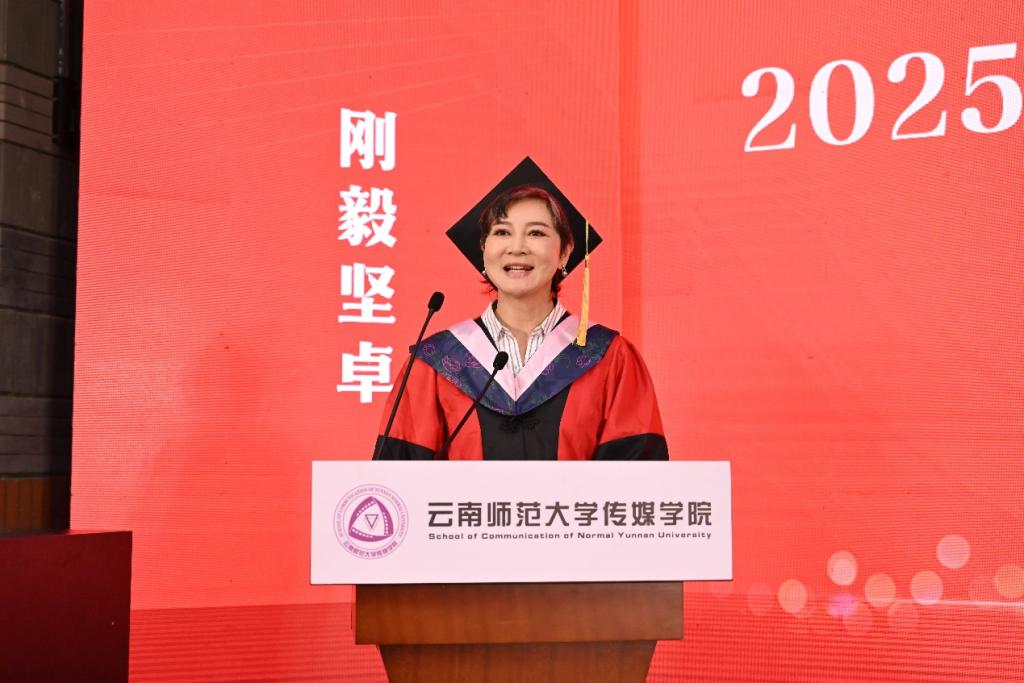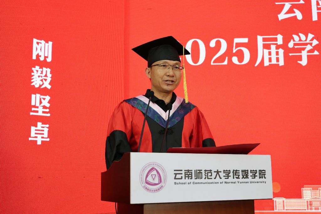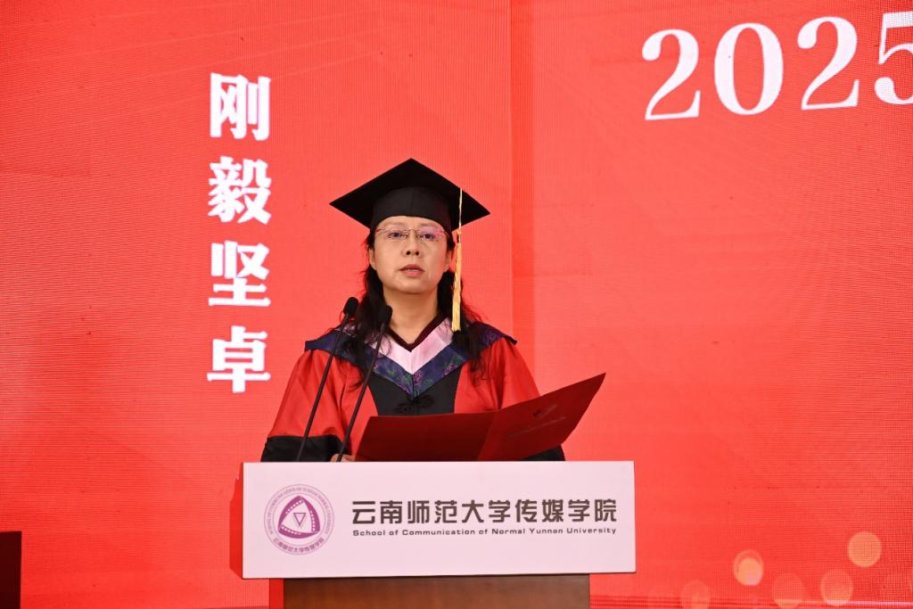 院党委书记毛志荣结合文化输出与传媒人的使命关系,给毕业生上了最后一堂思政课。他寄语学子通过学习新技术、坚守文化根脉,传递中国文化的自信与力量,做有信仰、有温度、有格局的传媒人,以传媒之力展现中国,让世界看见中国。院长赵枝琳通报了考研升学情况,并宣读省级优秀毕业生、校级优秀毕业生的表彰决定,她勉励同学们在未来的学习工作中继续发扬拼搏精神,努力成长为德才兼备的高素质传媒人才。