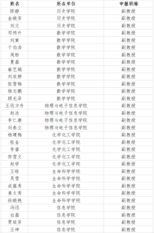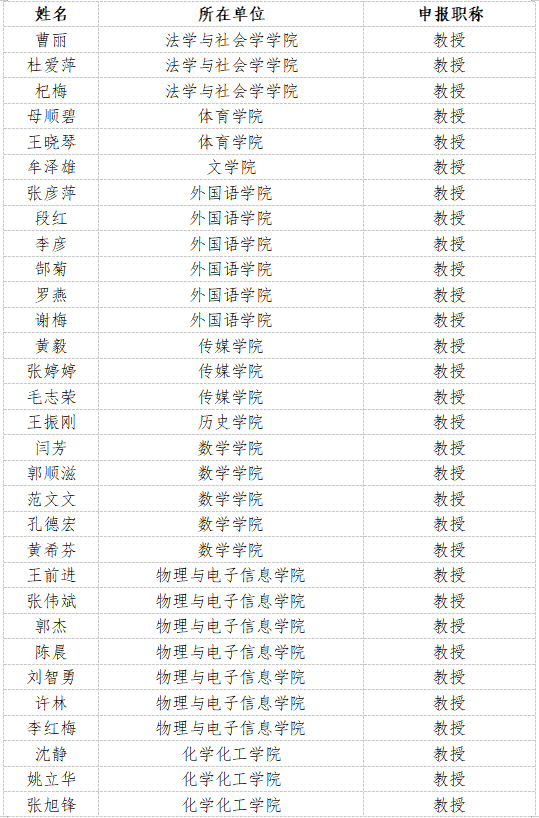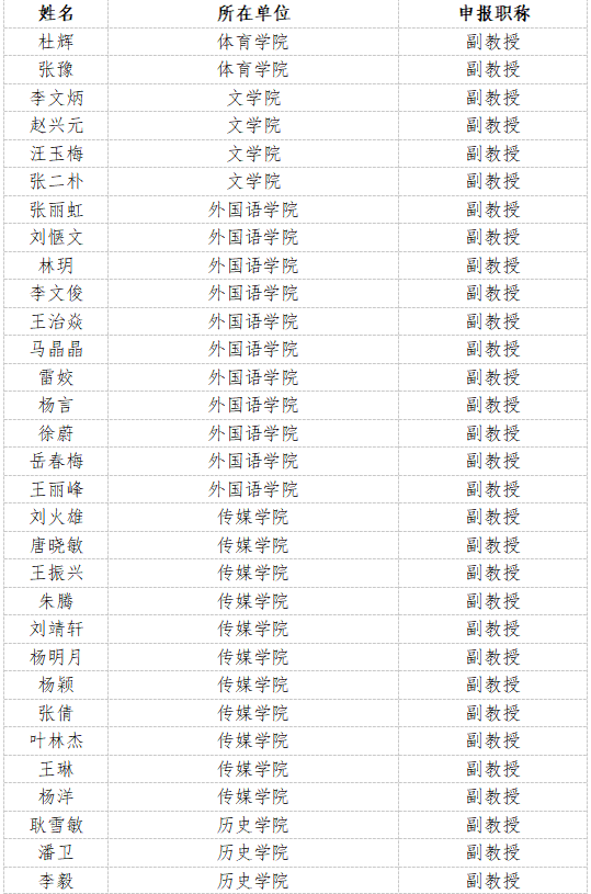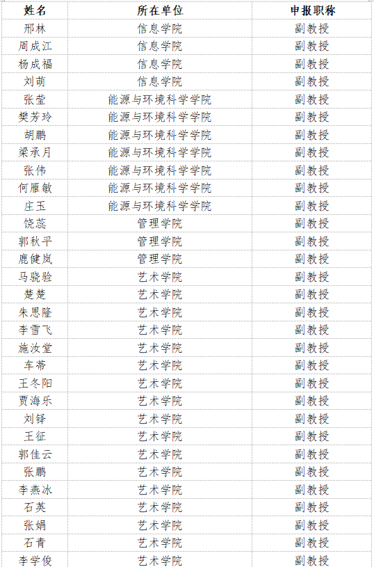 经资格审查,拟同意以下申报评审高级职称人员提交8858cc永利唯一官方网教授副教授评审委员会评审,现进行公示(同部门按姓氏笔画排序)。