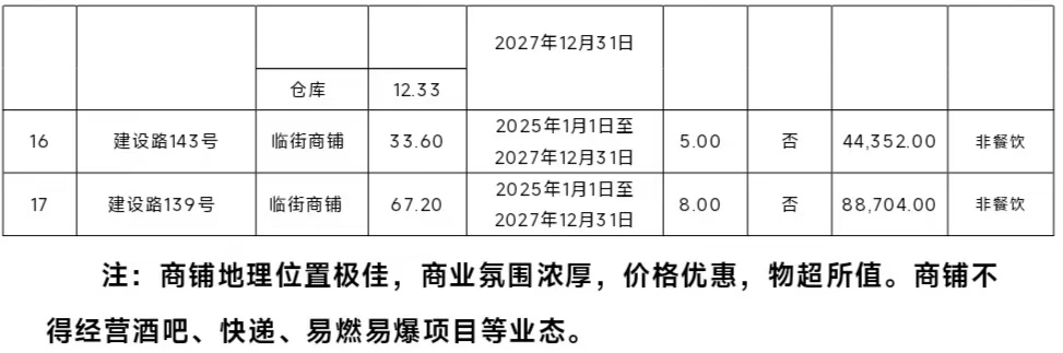 3.通过本次竞租取得租赁权的买受人,必须在8858cc永利唯一官方网资产经营有限责任公司的管理下从事经营活动,必须合法、守法经营。不得从事违法违规活动,房屋不得用于危险品生产经营,标的除特定商铺外不得经营餐饮、酒吧、快递、易燃易爆项目等,不得转租、分租给第三方。使用期内注意防火防盗,否则所产生的一切后果将由买受人自行承担;