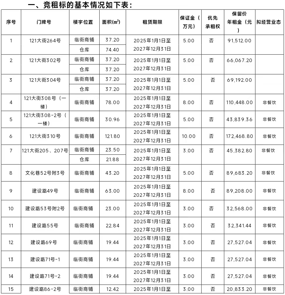 1.标的以现状进行竞租,竞买人在竞租前应充分了解标的的相关情况和瑕疵,以及可能出现的风险;