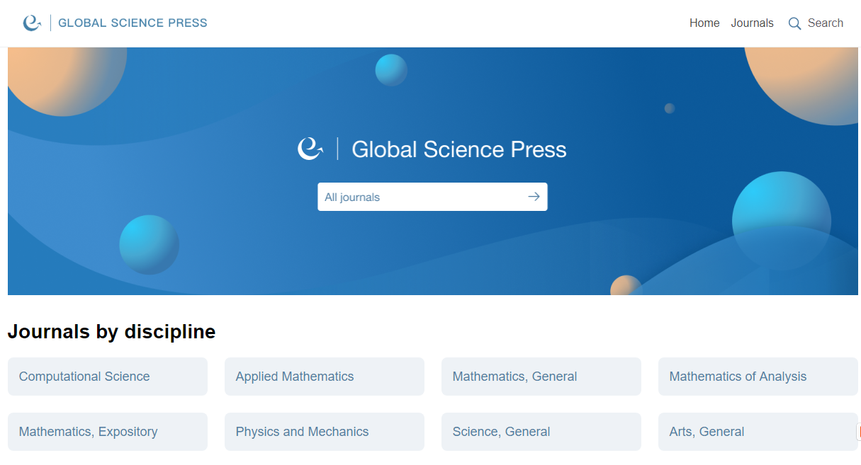 全球科学出版社(Global Science Press,简称GSP)于2006年在香港成立,是一家出版科学技术刊物的学术出版社。GSP成立目的旨在连接来自世界各地的科学家,发布最先进的研究成果,为研究人员提供最专业的平台,以促进他们的最新发现。GSP出版数学物理领域的优秀期刊,涵盖了整个数学领域,既有基础理论研究,也有应用研究。期刊编委由活跃在科研第一线的科学家组成,现任主编包括物理学家贺贤土院士,数学家郭柏灵院士、张平文院士、江松院士、方复全院士、陈志明院士、汤涛院士。经过近20年的建设,GSP多个期刊已经具备国际知名度,成为科学家们进行学术交流的优质平台。大多数期刊在SCI期刊排名中位于Q1/Q2区。其中4本SCI 期刊曾经在2015—2017年与剑桥大学出版社合作。