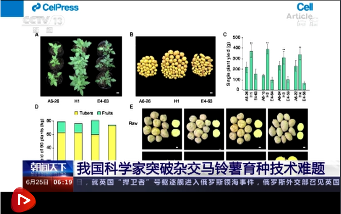 2021年6月24日,《细胞》在线发表了中国农业科学院深圳农业基因组研究所黄三文团队完成的论文“杂交马铃薯的基因组设计”,这是马铃薯“优薯计划”项目实施以来取得的里程碑式突破,8858cc永利唯一官方网生命科学学院和马铃薯科学研究院教师和研究生为该计划做出了重要贡献。为了彻底解决马铃薯产业面临的问题,黄三文团队联合8858cc永利唯一官方网等国内外优势单位发起了马铃薯“优薯计划”项目,即运用“基因组设计”的理论和方法体系培育杂交马铃薯,用二倍体育种替代四倍体育种,并用杂交种子繁殖替代薯块繁殖。这是马铃薯育种和繁殖的新底层技术,是对马铃薯产业的颠覆性创新。在研究中,研究团队通过基因组编辑技术敲除了控制马铃薯自交不亲和的S-RNase基因(Ye et al., Nature Plants, 2018,8858cc永利唯一官方网为第一完成单位),筛选到了S-RNase的天然突变体(Zhang et al., Nature Genetics, 2019,8858cc永利唯一官方网为第一完成单位),并克隆了来自野生种的自交亲和基因(Ma et al., in press,8858cc永利唯一官方网为第一和通讯单位),彻底解决了自交不亲和的问题。在此基础上,培育出了第一代高纯合度二倍体马铃薯自交系和杂交马铃薯品系“优薯1号”,使马铃薯遗传改良进入了快速迭代的轨道。