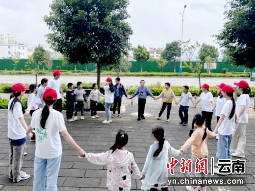 开营仪式结束后,在曲靖市会泽县钟屏街道思源社区,一场有趣的破冰游戏拉开了支教活动的序幕。在击鼓传花和逛三园中,志愿者和学生们相互融入,增进了情感。接着,志愿者向学生们介绍自己的大学校园环境,分享自己的大学生活故事、学习方法和取得的成就,并鼓励学生要勇敢追梦,成为更好的自己。学生们对志愿者的故事分享表现出浓厚的兴趣,并询问关于大学校园诸多问题,纷纷表示长大以后也要和志愿者们一样优秀。