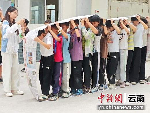 在心理健康方面,志愿者带领学生一起探索内心世界,了解自身情绪变化,掌握应对压力和挫折的方法。此外,志愿者组织学生表演情景剧《拒绝网瘾》,通过合理的剧情、生动的角色扮演,让孩子们认识到如何正确使用网络,以及如何在网络世界中保护自己;搭火车、报纸坦克等趣味活动让学生在轻松愉快的氛围中获得心灵成长。