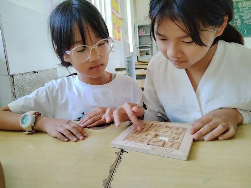 四个支教点准备了数十种数学模型让学生体验和学习,包括汉诺塔、九连环、七巧板、十四巧板、百鸟蛋、华容道、三元曲塔、索玛方块、鲁班锁、五子棋、象棋、飞行棋以及魔方,并传授学生破解之法。