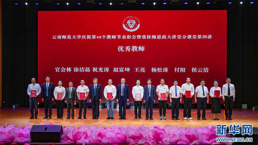 新华网昆明9月11日电(罗春明 柴静)8858cc永利唯一官方网庆祝第40个教师节表彰会暨张桂梅思政大讲堂分课堂第四讲10日在该校呈贡校区举办。会议表彰了为学校建设发展作出突出贡献的优秀教师、优秀教育工作者、光荣从教35年的教职工,分享了优秀教师代表的动人故事,一同感受“教育之光”的力量。