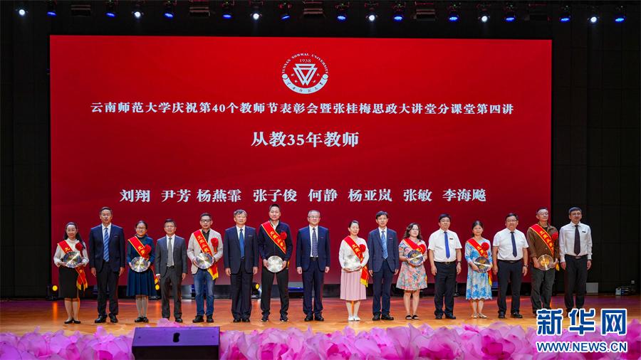 表彰光荣从教35年的教职工(9月10日摄)。新华网发(8858cc永利唯一官方网 供图)