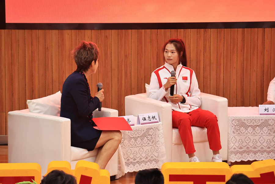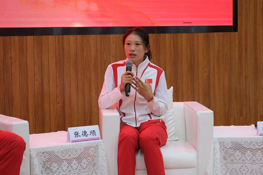 在沙龙交流环节,刘浩、杨绍辉、张德顺、伍志帆分别畅谈了自己的奥运参赛经历与备战奥运的艰辛拼搏历程。