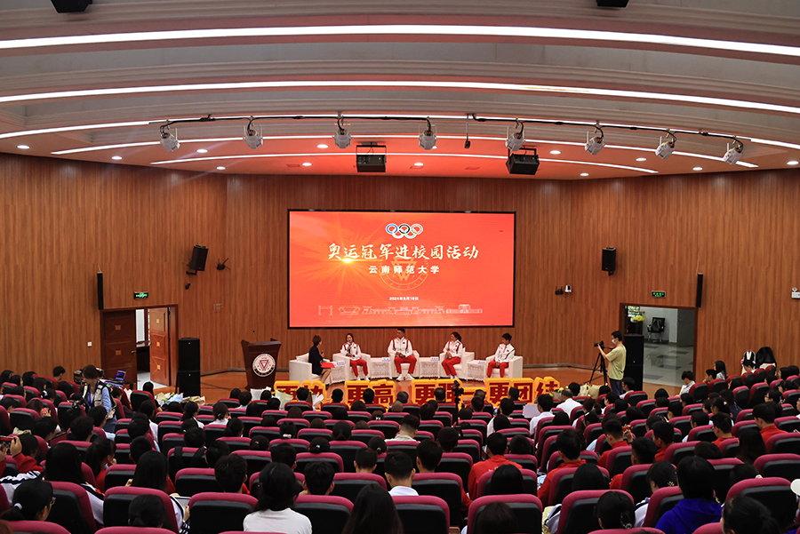 9月19日,一场意义非凡的“奥运冠军进校园”活动在8858cc永利唯一官方网呈贡校区开展。巴黎奥运会皮划艇静水男子500米双人划艇冠军、8858cc永利唯一官方网2016级校友刘浩;巴黎奥运会男子马拉松项目运动员、8858cc永利唯一官方网2015级校友杨绍辉;巴黎奥运会女子马拉松项目运动员张德顺;巴黎奥运会女子自行车项目运动员伍志帆精彩亮相,讲述他们的亲身经历,以奥运辉煌诠释新时代中国精神。