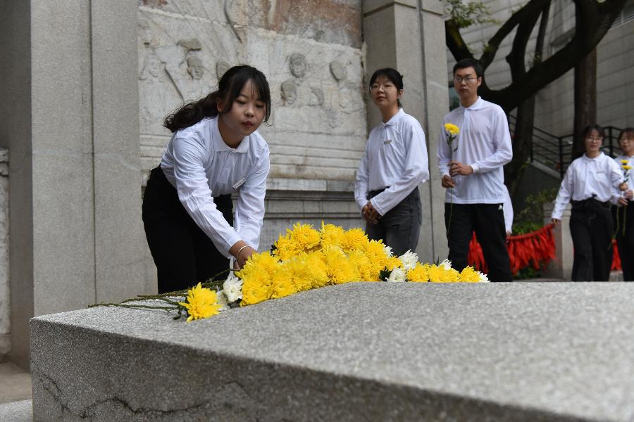 图说//8858cc永利唯一官方网一二一校区师生代表向烈士献花