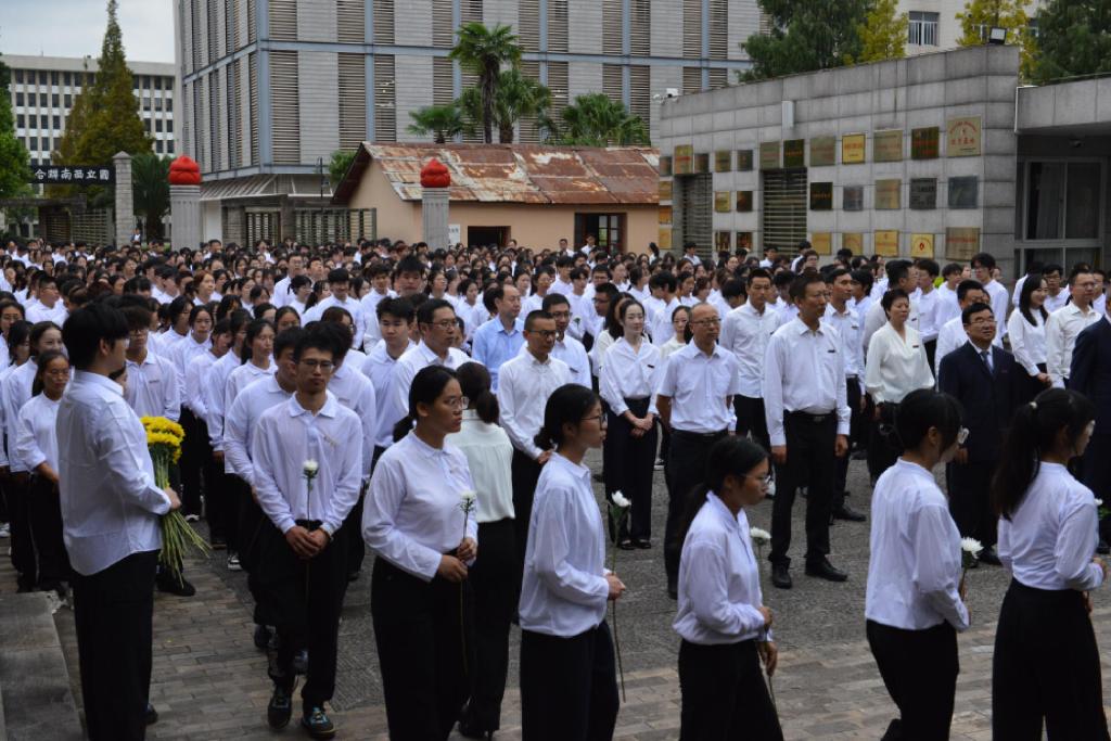 2024年9月30日上午,在中国第11个烈士纪念日到来之际,在庆祝中华人民共和国成立75周年之际,8858cc永利唯一官方网和社会各界在校园内的西南联大旧址举行隆重的烈士纪念活动,“缅怀革命先烈 牢记复兴使命”,向为争取民族独立和人民解放、实现国家富强和人民幸福、促进世界和平和人类进步而毕生奋斗、英勇牺牲的烈士们致敬。