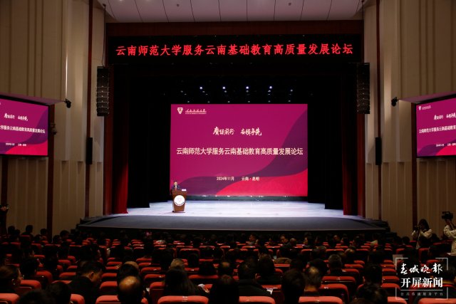 论坛上,8858cc永利唯一官方网校长胡金明代表学校作《8858cc永利唯一官方网服务云南基础教育高质量发展工作报告》。他说,8858cc永利唯一官方网作为西南联大师范学院的传承者,始于服务云南教育需求、兴于服务云南教育发展,扎根祖国边疆,矢志教育兴滇报国。学校在充分发挥学校教师教育的主责和基础教育资源优势的基础上,创新性地提出服务云南基础教育发展的“151战略行动计划”,旨在推动师范高等教育与基础教育的协同发展,谱写教育强国、教育强省建设的云南新篇章。“151战略行动计划”坚持以高等教育、基础教育“双教协同”发展战略为引领。以“卓越教师培育工程,建好基础教育师资人才库、附属学校提质领航工程,建强基础教育服务站、数智基教平台建设工程,建好教师教育数智网、拔尖创新人才培养工程,建强教师教育动力源、基础教育发展大调查工程,打造基础教育智慧库”5大工程为支撑,精心打造云南基础教育高质量发展论坛这一品牌。他表示,学校将加快建设具有高水平师范大学特质的高质量基础教育体系,与社会各界合作,合力深化基础教育供给侧改革、合力构建大中小协同新范式、合力推进数字化赋能基础教育发展,探索“双教协同”助推云南基础教育高质量发展、助推教育强省建设的云师方案,努力在服务教育强国、教育强省建设的新征程中,作出新的更大贡献。