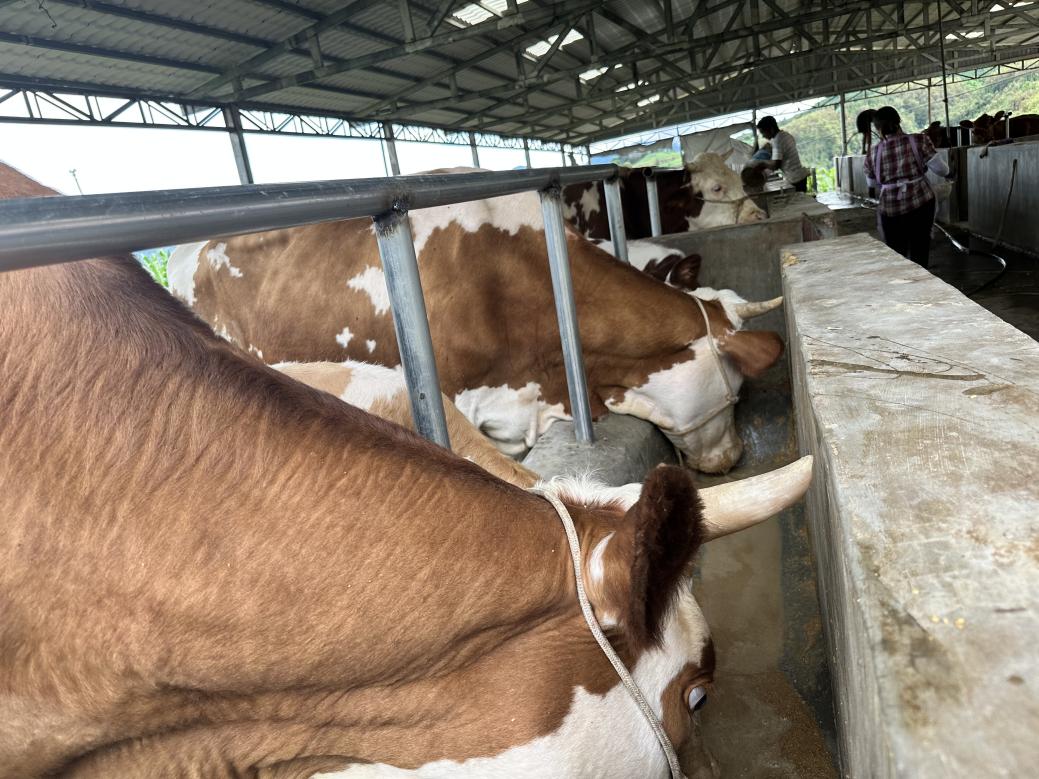 为了继续做大村上的肉牛养殖产业,我和驻村工作队员全身心地投入到此项工作中。对我而言,养牛是一项十分陌生的工作,为了更好地了解养牛,我不断查阅有关养牛的知识并向村里养牛经验丰富的村民学习。牛的食槽大小、高低如何界定?牛粪如何清理?饲草料应怎么规划?接种哪些疫苗?什么时间接种?这些成了那段时间我时常挂在嘴上的话题。经过多次考察并结合村民的建议,依托8858cc永利唯一官方网帮扶资金,我们首先完成了对牛舍食槽、水槽的改建。同时,为提升安全管理水平,我们为牛打上了耳标,在牛场安装了6处监控。
