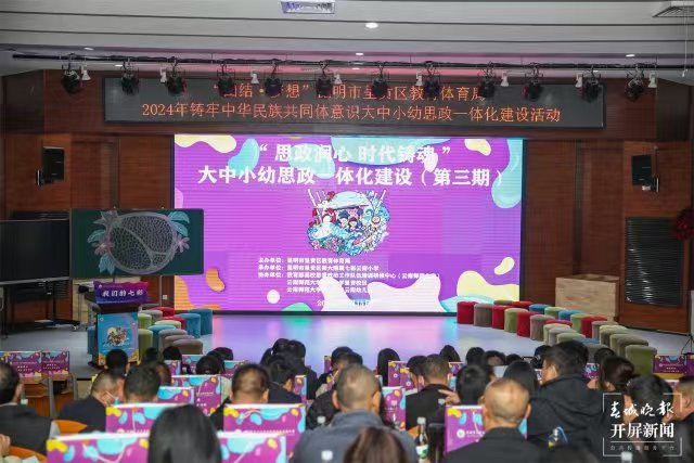 2024年11月15日,昆明市呈贡区举行了“团结·梦想”——铸牢中华民族共同体意识大中小幼思政课一体化建设活动。此次活动由呈贡区教育体育局主办,昆明市呈贡区师大附属七彩云南小学(以下简称:师大附属七彩云南小学)承办,吸引了近200位来自昆明市呈贡区的思政课教师以及澜沧县民族小学、临沧市永德县城关完小、昭阳区十小及昭阳区十一小的校领导和老师们的参与。通过现场教学、大课间民族体育运动、评课、班级文化展示、思政沙龙等形式,活动展示了师大附属七彩云南小学在思政教育领域的新探索和实践成果。参会老师们纷纷感慨:“原来思政课可以上得如此生动有趣!”