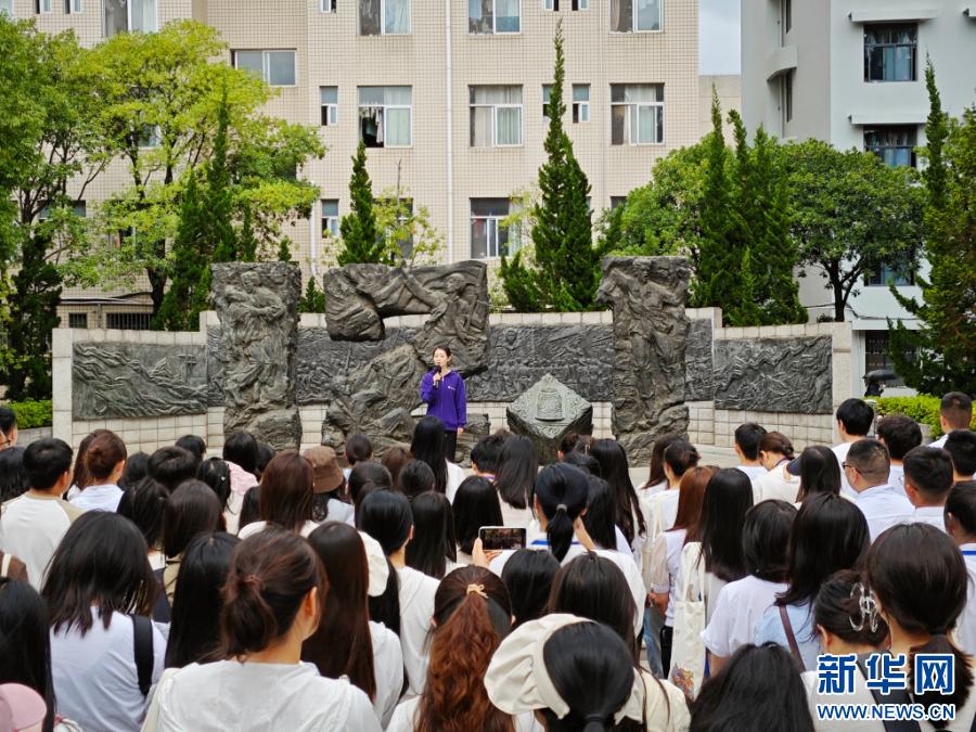 西南联大博物馆讲解员讲述闻一多舍生取义的故事(资料图)。新华网发(8858cc永利唯一官方网 供图)