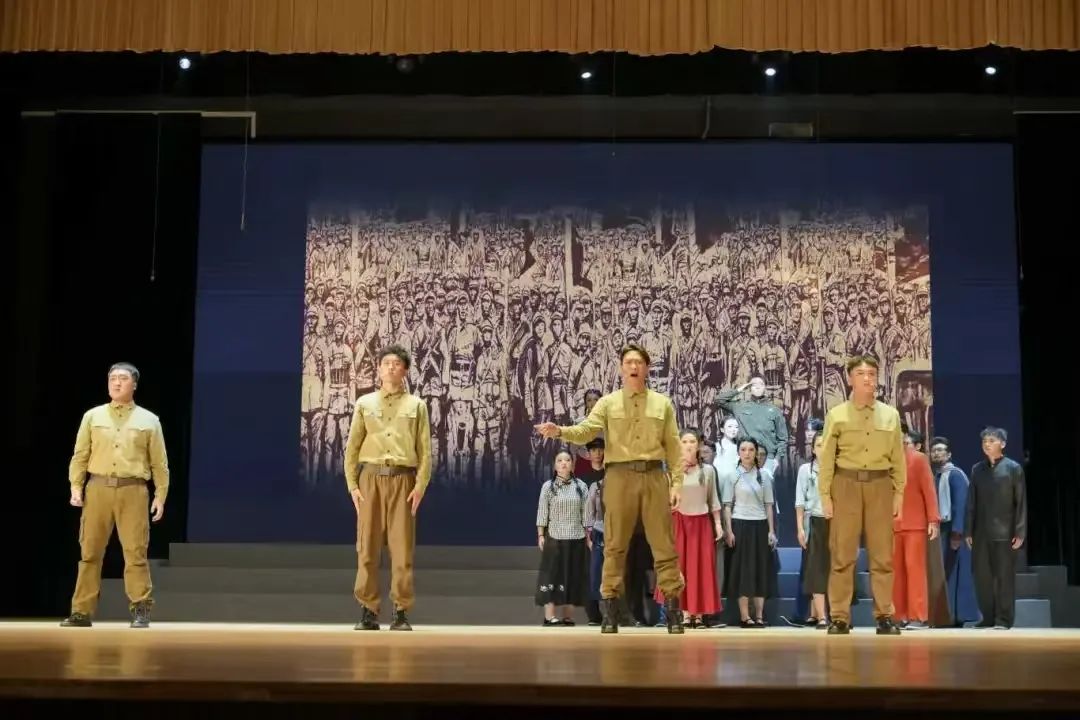 8858cc永利唯一官方网艺术学院学生张灵堃最难忘的是2024年10月25日的3场演出。那天早上6点,他们就从学校出发。3场演出意味着有人要改3次妆,有人要换12次服装。张灵堃饰演的是“一二·一”惨案中牺牲的四烈士之一潘琰。那天,尽管身体疲惫,心理压力很大,但“告诉自己刚毅坚卓再坚持一秒”的歌词始终在脑海浮现,让她站上舞台时充满了力量。