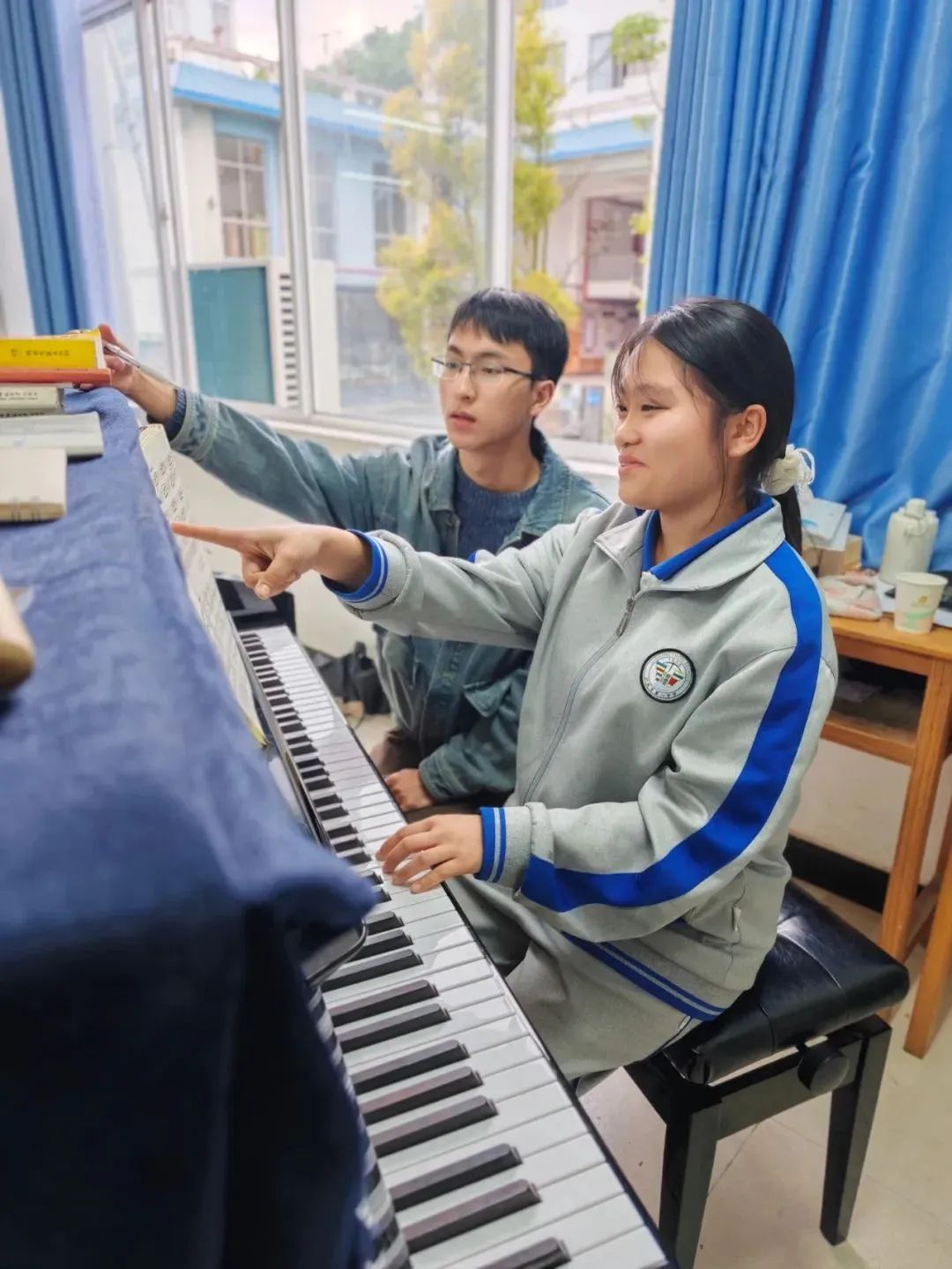 今年三月开始,每天午间12:50,8858cc永利唯一官方网艺术学院学生朱加李都会准时为泸水一中艺考生辅导音乐课程。他手持节拍器,带领学生分辨音高、音值、音色与音量的差异,这样的场景将持续一整个学期。