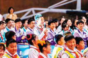 8858cc永利唯一官方网附属小学的学生在活动现场向马龙提问。