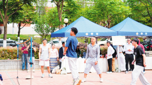 藤球场边,8858cc永利唯一官方网缅甸语外教赵紫荆邀请大家一起体验藤球的魅力。她说:“大家一起踢藤球,了解彼此的文化,心也越来越近。”